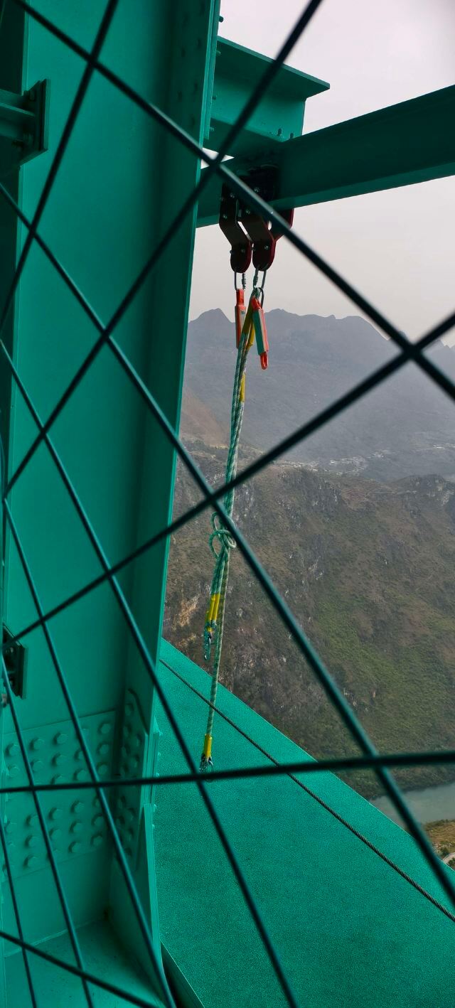 大桥南桥塔(贞丰岸),设有桥体观光电梯,同时也是全国首座建于高桥桥塔的全透明观光电梯。电梯运行速度每秒4米,1分钟内直达距江面约800米的塔顶。360度全景高透玻璃轿厢,提供无瑕观景视野,俯瞰峡谷如线、云海翻腾,被誉为“基建狂魔的梦幻电梯”。