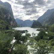 5分 超棒浩坤湖距离凌云县30多公里,从凌云县到浩坤湖有30多公里的步道,体力好的同学可以步行抵达。最佳旅行方式当然是自驾,一般自驾车辆要停在坡贴集散中心,距离浩坤湖还有10公里的地方,乘景区车辆进入。但要想办法混过坡贴岗,因为湖太大,里面最好还是自驾。过坡贴岗以后最佳方式是从彩架乡、浩坤村、三合乡顺时针转湖,车道不能环湖一圈,环湖一圈只能步行,但水大的时候部分步行道会被水淹。过浩坤村以后有一个高高的亭子一定要爬上去看一下,那里是最美的观景点,狭长的浩坤湖看上去有点峡湾的感觉。之后车子会从一个天然溶洞穿过,非常神奇。渔翁亭也值得爬上去看一下。浩高码头是游客最多的地方,景区车也停在那里。过浩高码头以后是三合乡,过了三合乡以后就只能步行,不能开车了。门票50,车费10。非常建议当地旅游部门在游客不多的时候放行自驾车辆进入景区,非自驾不能体会浩坤湖的美。
