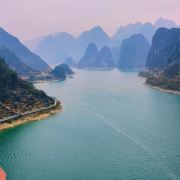 浩坤湖广西壮族自治区旅游景点,位于百色至凌云的公路边,为澄碧河水系堵洞成湖,距离神云龙宫五公里,湖宽500-1000米,是一个以自然风光和生态旅游为主题的湖泊景区。浩坤湖四周群山环绕,湖水清澈见底,宛如一颗镶嵌在大地上的明珠。这里的宁静和纯粹吸引着众多游客前来放松身心,远离城市的喧嚣。