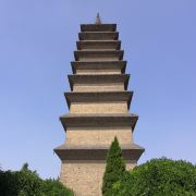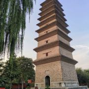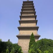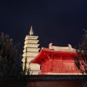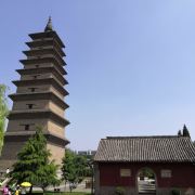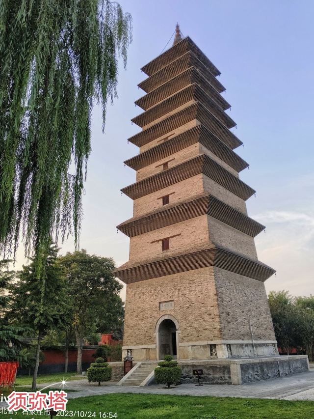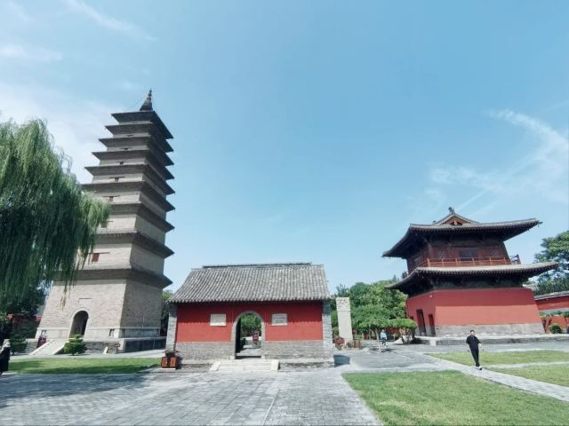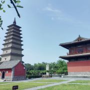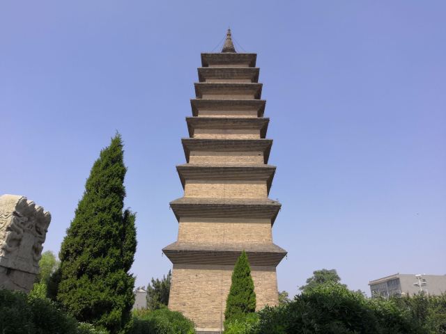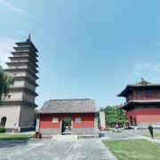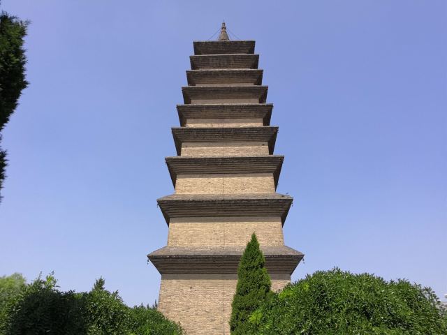 ③须弥塔:始建于唐贞观十年(636年),高42.5米,九级正方形的砖石塔,俗称砖塔,因外形类似西安大雁塔又称雁塔,2005年修缮时在塔的宝珠内发现宝物、丝织品、经书等文物4000多件,数量之多十分罕见。塔内只有一层,目前供奉3尊金佛像。