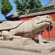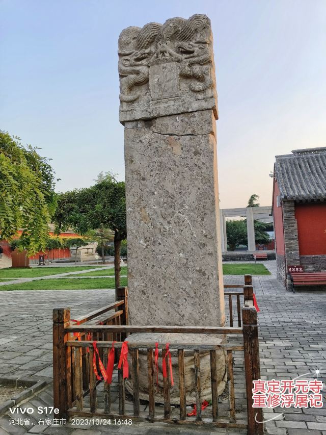 5分 超棒开元寺钟楼和须弥塔 开元寺位于正定常胜街西侧,原名净观寺,始建于东魏兴和二年(540),隋开皇十年(591)改名解慧寺。唐开元二十六年(738)奉沼改今名。现存的建筑却是显著的唐代风格。与其他寺院的布局不同,开元寺并非采用的对称布局,而是塔和钟楼并列而立,反映了佛教寺院建筑从早期以塔为中心向晚期以殿为中心的过渡情况。至清后期,因年久失修,寺院废毁,殿堂塌落,仅存钟楼和须弥塔。刹座、仰莲、覆钵均系砖砌,四周置铜境,光亮夺目。其上,系金属质刹杆、宝殊。宝珠多达四枚,显得格外挺拔关于须弥塔建造时代,地方志记载不详,未足凭信。根据现存实物并结合历史记载推断,此塔可能始建于唐贞观十年(公元636年),唐乾宁五年(公元898年)重建。后虽经历代维修但依然保持唐代建筑特点。须弥塔是正定古城“四塔”之一,是我国建筑宝库的珍贵遗产。2000年6月在正定城内府前街出土了一巨大赑屃(bìxì)残碑基座,长8.4米,宽3.2米,高2.6米,重107吨。赑屃为龙生九子之长,貌似龟,有齿,力大,好负重。因此其形象经常出现在石碑之下。安置在开元寺里的这座赑屃据说是国内最大的一只,鼻孔象猪,昂着脑袋,形象笨拙而可爱 。