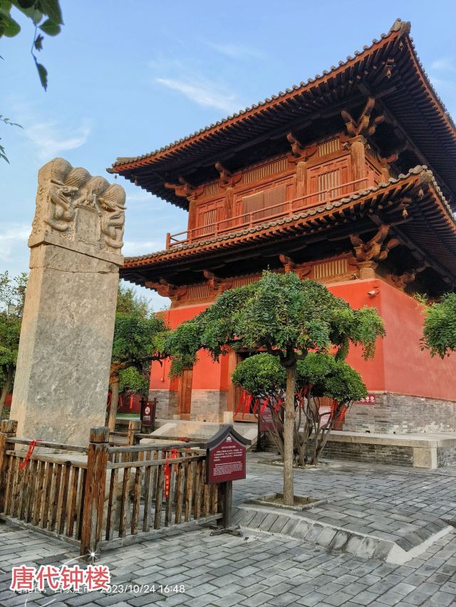 ②钟楼:我国现存唯一的唐代钟楼,钟楼上挂有一尊唐代钟,1990年在清理钟楼底层水井时发现地宫。内部目前是该寺考古时的图文记录。