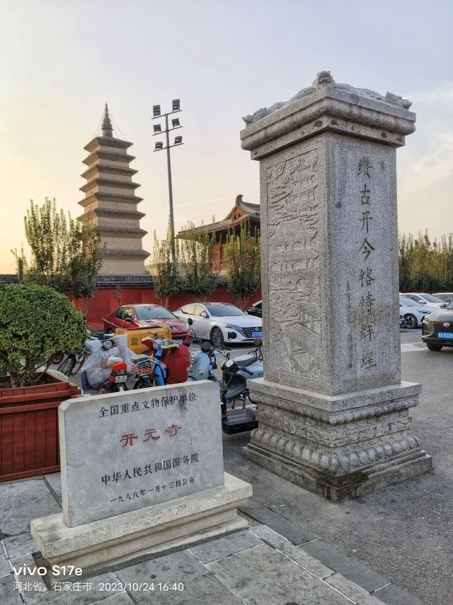 开元寺位于河北省石家庄市正定县燕赵南大街109号,始建于东魏兴和二年(540年),原名净观寺,是正定古城八大寺院之一。唐开元二十六年(738年),改开元寺。 寺内主要建筑为三门楼、天王殿、开元寺须弥塔、开元寺钟楼和法船殿遗址。主殿在后,开元寺钟楼、开元寺须弥塔于殿前左右对峙。开元寺主殿在后,楼、塔左右对峙的布局是唐代佛教寺院建筑布局的典型实例,在中国建筑史上占有重要地位。