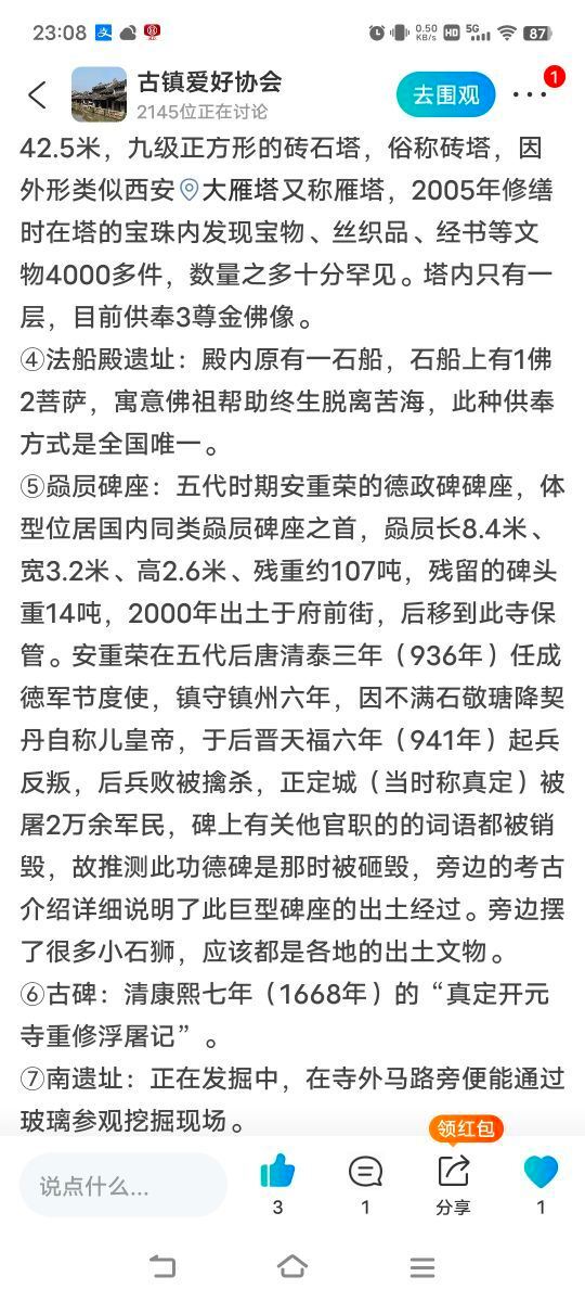 ⑤赑屃碑座:五代时期安重荣的德政碑碑座,体型位居国内同类赑屃碑座之首,赑屃长8.4米、宽3.2米、高2.6米、残重约107吨……