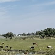 上都湖的湖边有一片金黄的花田,湖面波光粼粼,在这里可以感受原生态的自然风光。
