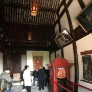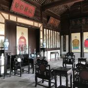 景区被一条水道分成两个区域,如果不进到房间里,在街上逛逛很快就能看完。进入景区首先参观的是郑氏家祠,往里走点能看到当年的厨房,特别的是,厨房故意没有修复,石墩、灶台和一些残垣暴露在外,墙头还长出了杂草,反而显得很有视觉冲击感。