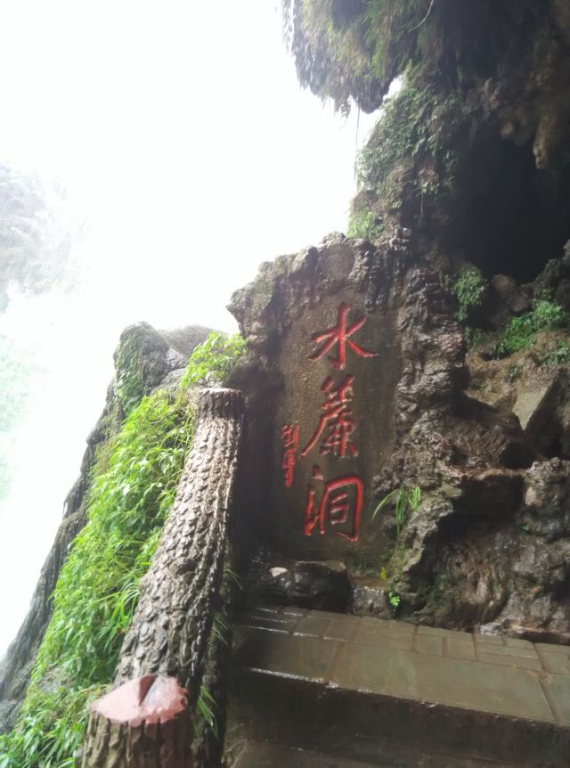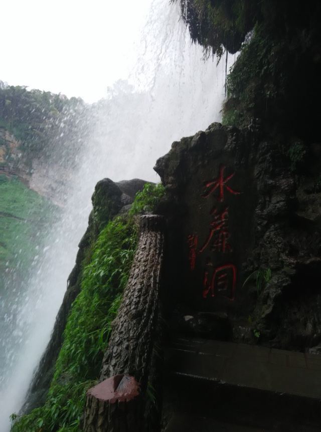 这个水帘洞隐在大瀑布半腰上,从大瀑布正面下方沿山道步行可到,但是一定记得先在景区外买好一次性雨衣,水帘洞内到处都有水滴,地上也是湿漉漉的,要注意别滑倒,到大瀑布处有观景台,看着巨大的瀑布就在眼前倾盆而下的感觉特别爽,尤其震撼,隔着玉洁晶莹的飞瀑向外眺望,瀑布对面的青山、绿树、游人,迷离恍惚,若隐若现,如入人间仙境。