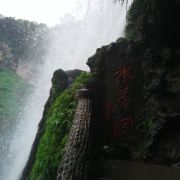 这个景点是在黄果树瀑布里面的,到达黄果树后坐电梯下去后从步道走上去就可以到达水帘洞了,水帘洞有一段是可以看到黄果树瀑布后面的景色,穿过水帘洞后往下走就可以到达吊桥。