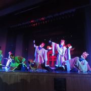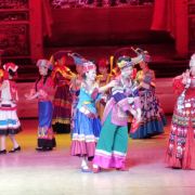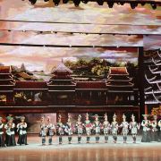 篝火晚会,演出结束后在剧院大院中,另一场精彩热闹的户外演出《篝火晚会》又开演了。彝族跳菜舞、水族斗牛舞、还有苗家阿妹演唱的苗族歌曲等精彩继续上演,游客和演员们手拉着手围成一圈,在熊熊燃烧的火堆旁踏歌起舞。