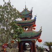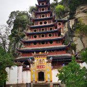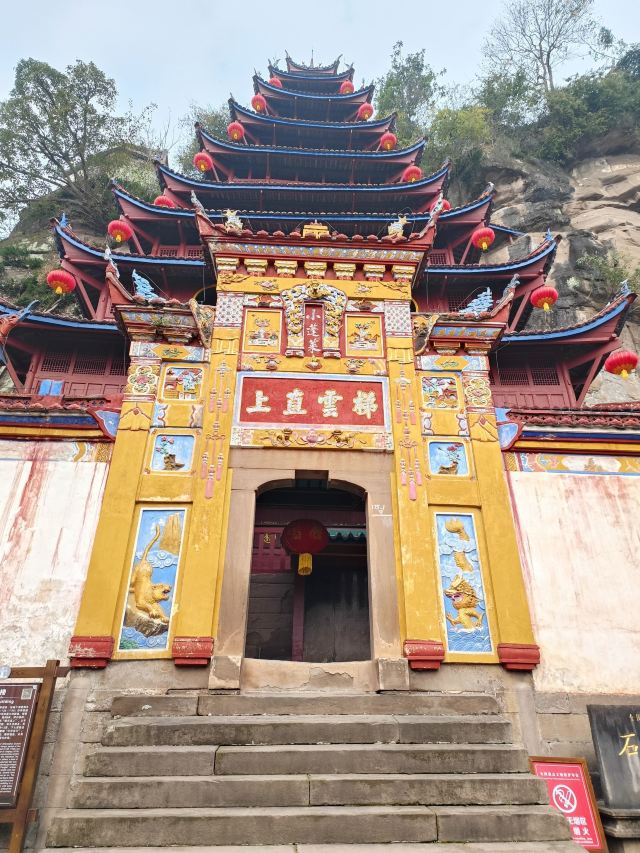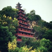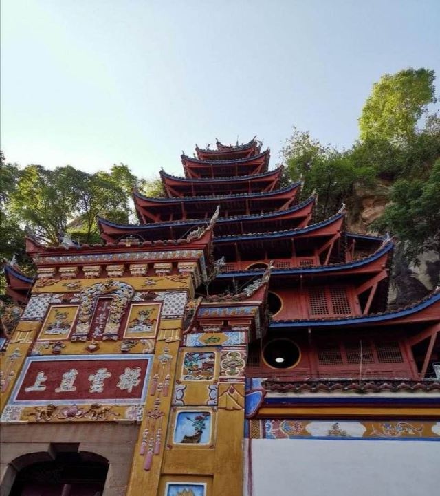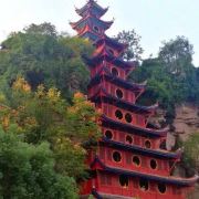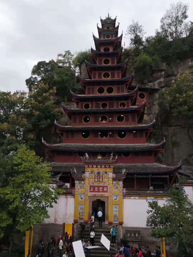 2、石宝寨始建于明万历年间,经康熙、乾隆年间修建完善。塔楼倚玉印山修建,依山耸势,飞檐展翼,造型奇异。整个建筑由寨门、寨身、阁楼(寨顶石刹)组成,共12层,高56米,全系木质结构。原建9层,寨顶有古刹天子殿,隐含“九重天”之意。