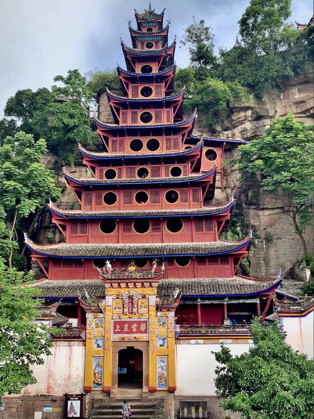 5分 超棒石宝寨塔楼,在长江边,倚玉印山修建。走在石宝寨塔梯的时候,就如同攀登着历史与神话的阶梯。