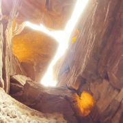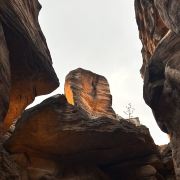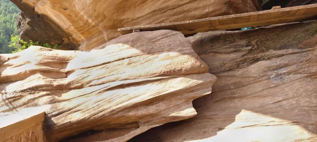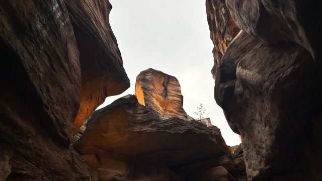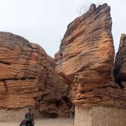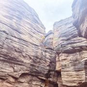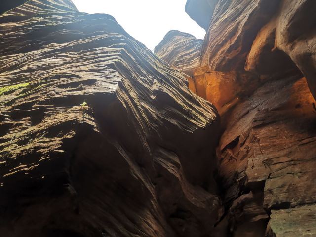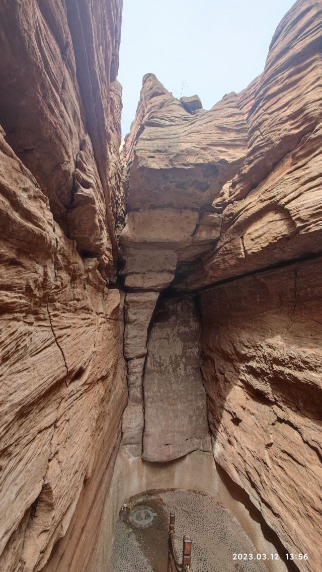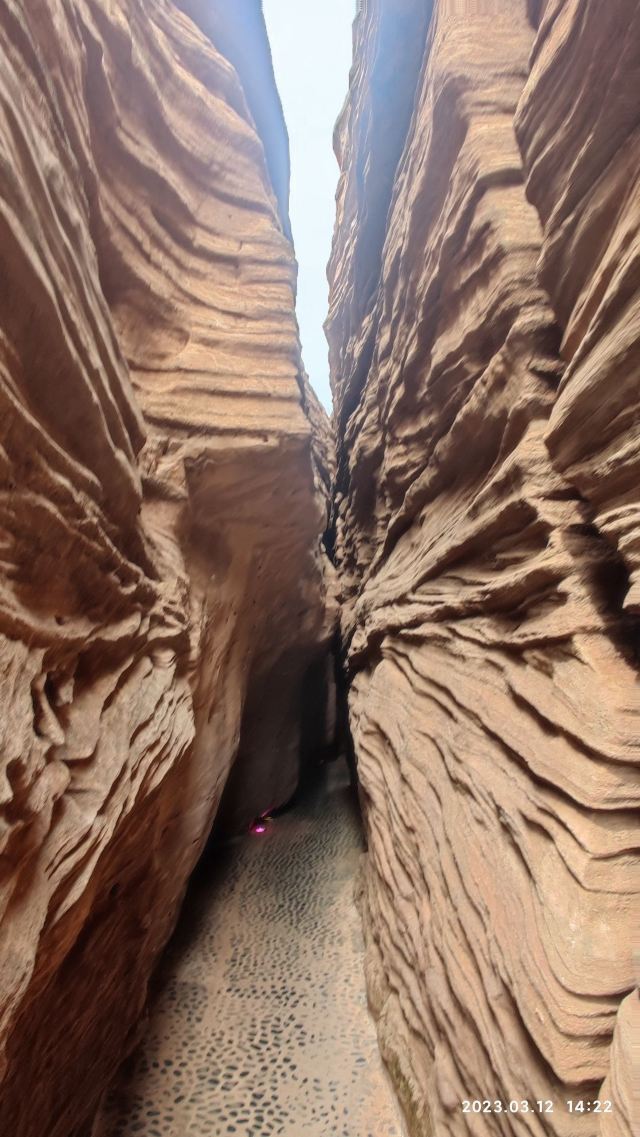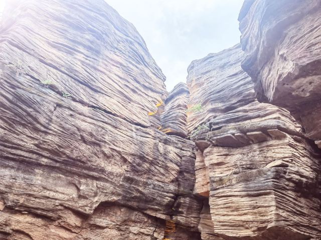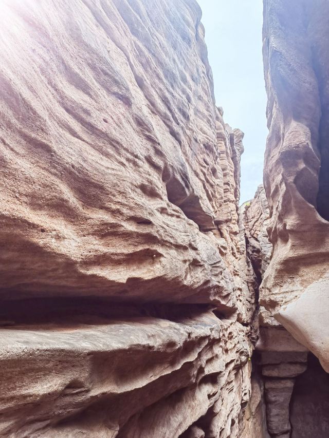 河谷两岸石壁绵延不绝、怪石林立谷中遍布,是第四纪冰川遗留下来的侏罗纪都砂岩,形成了这天然的狭缝型峡谷。