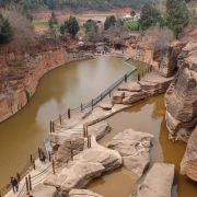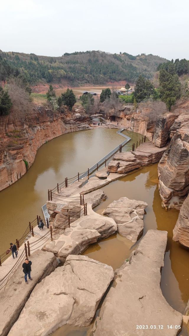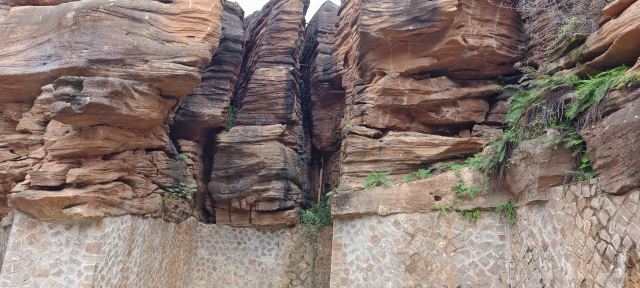 石林谷全长约2公里,现在还在1期,往上走还在开发中,上面还有两个天然水库,最大的叫团结水库,还有“长龄桥”、“盘龙寺”、“神仙阁”,在一个叫“黑木崖”天然巨石 上,重建寺庙.