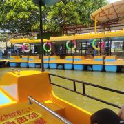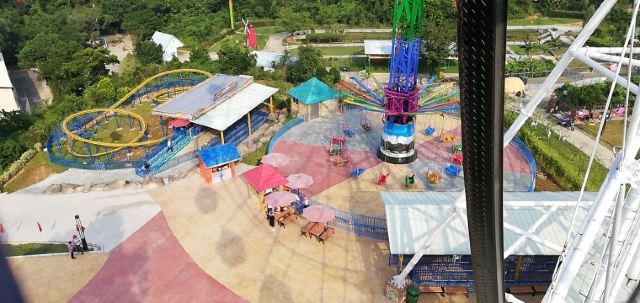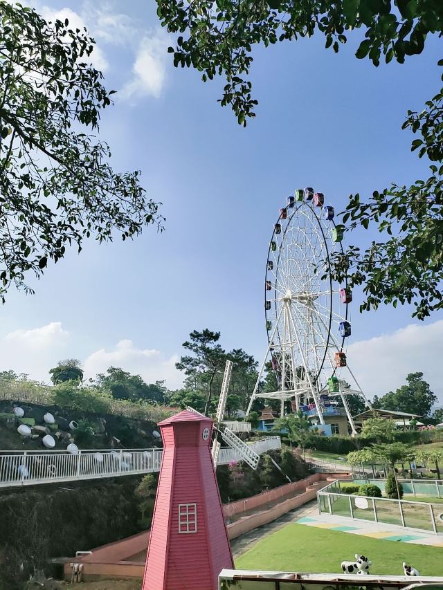 园区内有摩天轮、空中飞人、高空飞翔、滑索滑道、水上游船等30余项机动项目,还有全长1180米、最高点达200多米、最陡仅有45°的观光缆车,更有极速卡丁车、炫酷的ATV、刺激的山地自行车、真人实弹(彩弹)射击等体育项目。