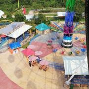 高空飞翔 号称泉林“三大巨头”之一的高空飞翔,高达43.4米,远远看上去像是“五彩缤纷”糖果糖;倾斜的角度让人有种滑落的感觉,极速旋转又带来眩晕的感觉,张开双臂就好像是身上长了双翅膀一样,漫天飞翔!
