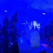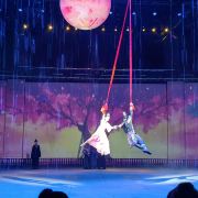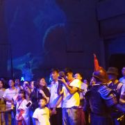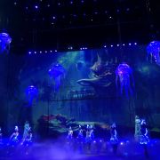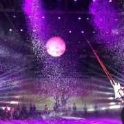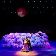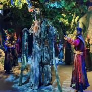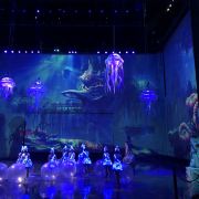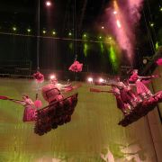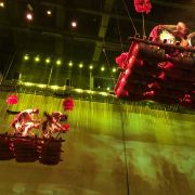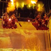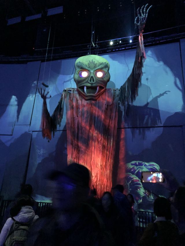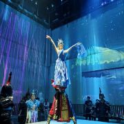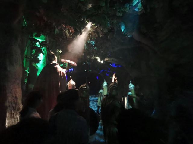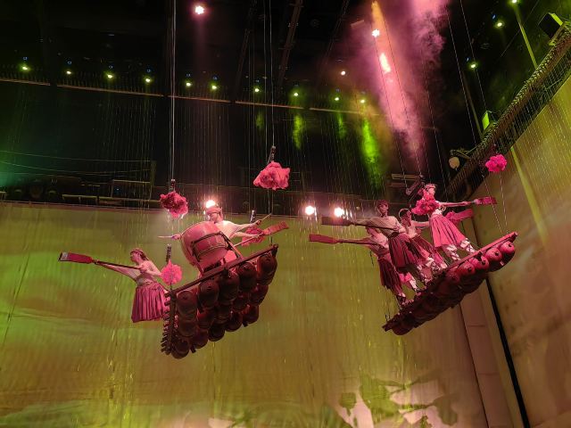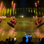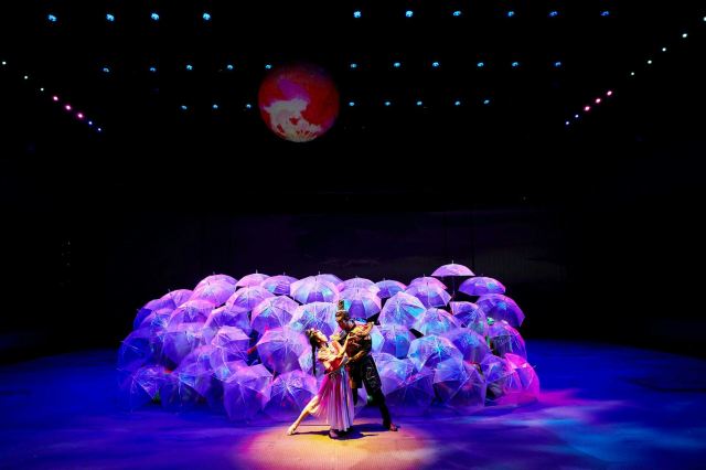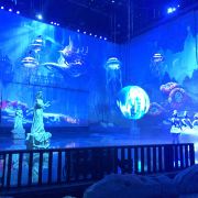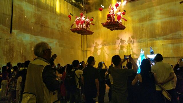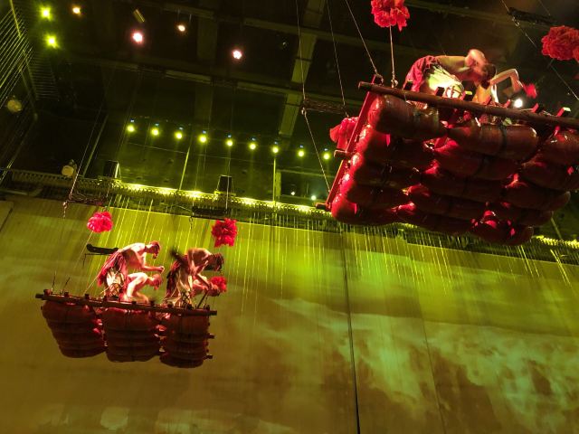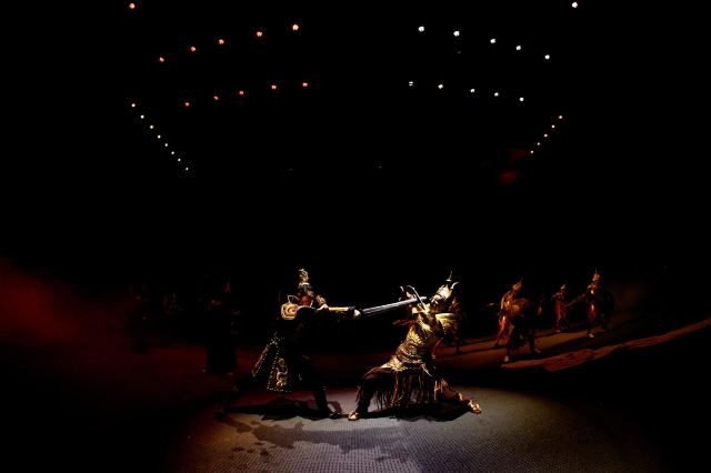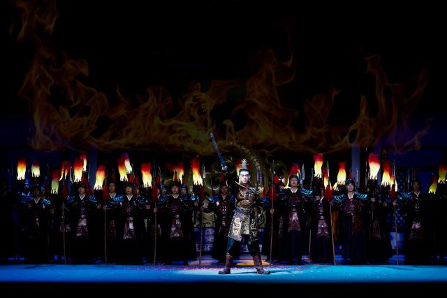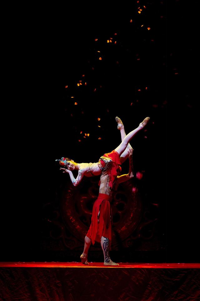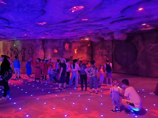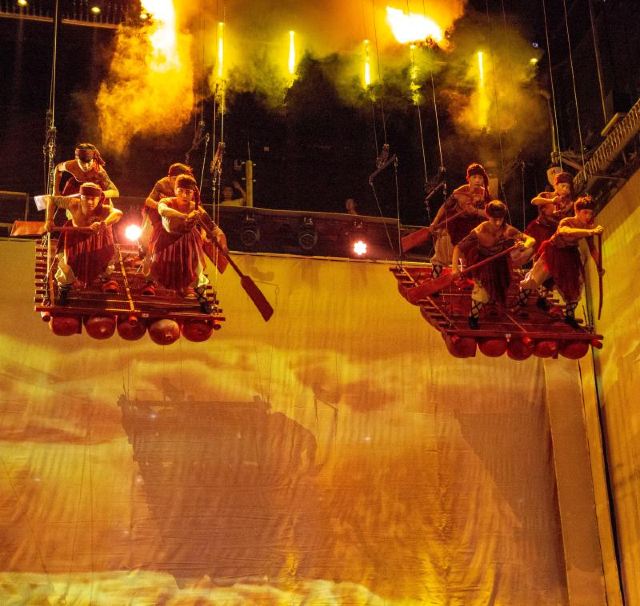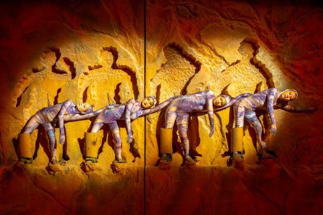与传统观演模式不同的是,《沙坡头盛典》集成运用了声、光、影、水、雾、烟以及全息影像、玻璃晶球、巨型升降平台等技术手段,让观众在演员的带领下,跟随剧情的发展变化行走在森林、火山、冰川等不同的演出场景中。演出过程中,观众不仅可以“触摸”到剧中的物体,还能随剧情变化,感受到桂王国的鸟语花香、魔幻森林的飞禽走兽、炼狱熔岩的火红炽热、冰雪世界的纯净寒冷,同时品尝到宁夏枸杞和当地美酒。