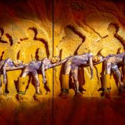 《沙坡头盛典》是丝路盛典系列旅游演艺继《吐鲁番盛典》《喀纳斯盛典》《敦煌盛典》《丝路花雨》《独山盛典》之后的又一力作。该剧以中卫沙坡头“桂王城”“沙坡鸣钟”“沙掩王城”“泪泉”等神话传说为故事原型,通过西寻、求亲、归乡、降魔四幕讲述沙坡头的前世今生,充分展示了沙漠、绿洲、黄河、大麦地岩画、羊皮筏子、麦草方格治沙等本土符号。[3]