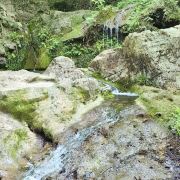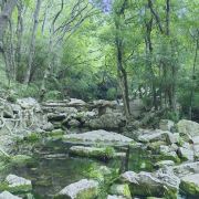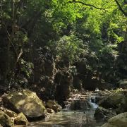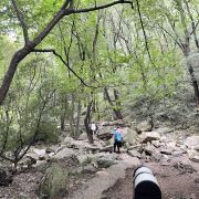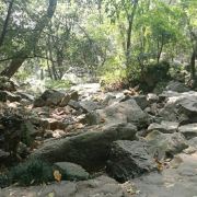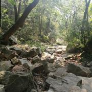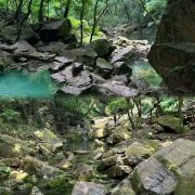 沿着九级天溪溯溪而上,沿途布满了大小不一错落有致的的石头,或是光滑如镜,或是苔痕上绿,踩入水中的那一刹那,冰凉的感觉便上了头。