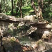森林公园很大,有山可以爬,有水可以玩,有寺庙遗址可以探寻,有石钟乳洞可以欣赏。停车场边上有捕鱼网兜和折叠小桶卖,一问,还有小鱼小虾可以捞,这不就妥妥成了孩子们玩耍的天堂?