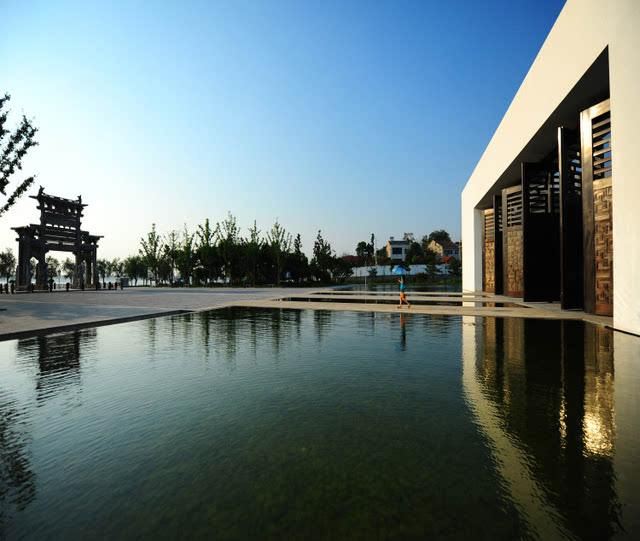 4分 满意钟祥博物馆整个建筑宛如自然山水画中的印鉴,平面吸收中国汉字印章之骨架,呈“明”结构,“日字”主馆,“月字”附馆,整个建筑沉浸在景观水池之中,形成了博物馆的外园,主馆与附馆之间的室外连廊和开放空间,形成了博物馆的内园,呈园中之园的空间意象,建筑两侧为景窗,游廊、台榭、景窗以灰白素雅为主,外部白色,内部灰色,进出口安装龙字铜门。