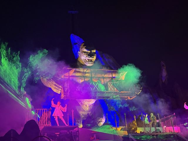 从奇趣科考区再往前走,又到了史前海洋区的滨海小镇建筑特色,代表设施是金刚奇遇。