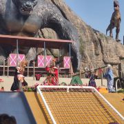 可以乘坐我们的高空翼龙来一趟穿越恐龙世界的旅行,除此之外还有探秘恐龙岛,跳跳蛙,天降骑兵嘉年华,莺歌曼舞,暴龙机甲,项目非常的丰富。