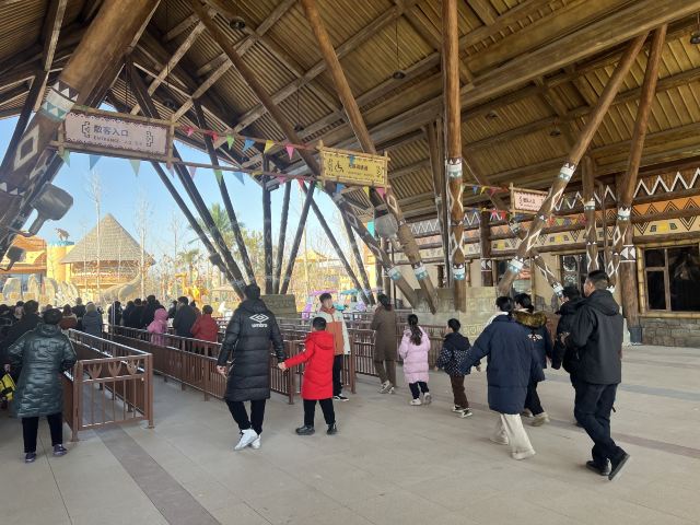 从我们的史前海洋区出来之后,就是原始森林区,它的建筑都是雨林风格的,拍照打卡非常出片,代表项目是翼龙飞翔。