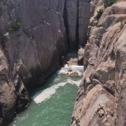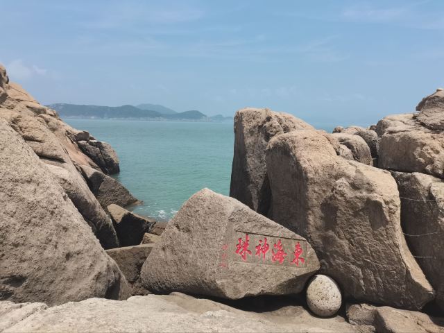 东海神珠在塔湾景区内龙珠滩海边,经过海浪长时期冲击,磨练成一颗直径80厘米的石球,称为“东海神珠”,堪称“中华一绝”。龙珠在龙喉里吞吐翻滚,发出隆隆回声,编织出一幅美妙神奇的“金龙吐珠”图。