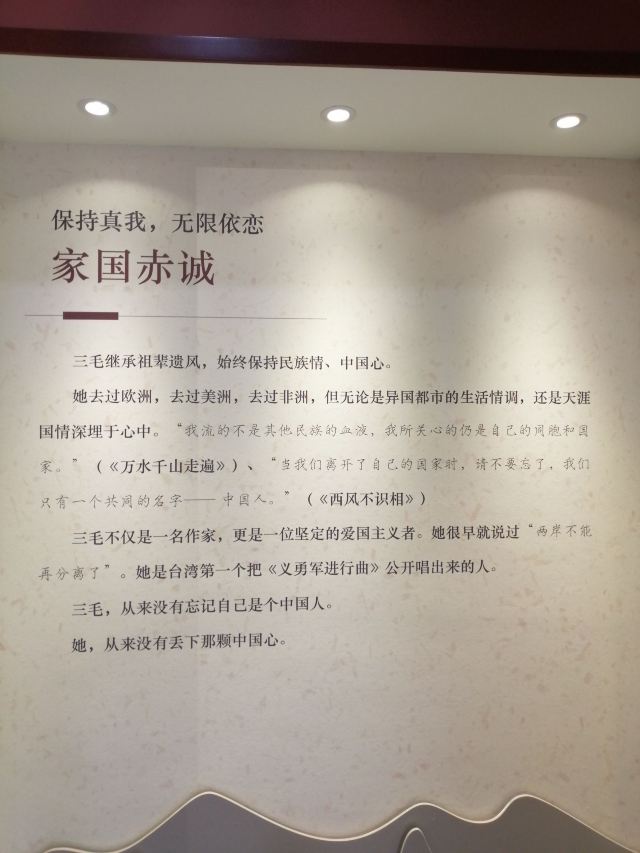 展室中所展出的许多珍贵展品系,每件展品都洋溢着三毛浓浓的思乡情和爱国情。