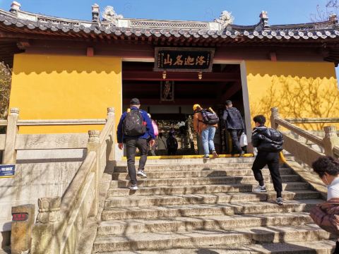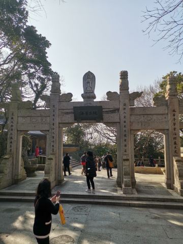 山上有圆通禅院(圆通庵)、大悲殿、大觉殿、伽蓝殿、五百罗汉塔、四十八愿塔等可前去拜谒,龙泉古井、仙桥和水晶宫古意盎然。值得一提的是东北小山上的灯塔,这就是传说中的“洛迦灯火”了。这灯塔古时候只是一座天灯台,用于指点海船夜航,古人曾赞它“荧荧一点照迷津,光夺须弥日月轮”,如今,天灯台已改建成洛迦山灯塔,为来往船只指引方向。不过游人不能入内参观,只能走到“珞珈灵山”的石碑处远望。