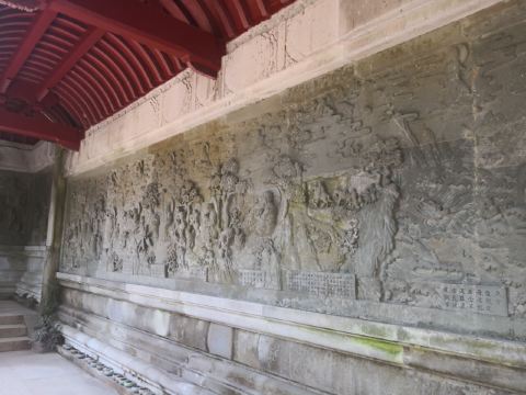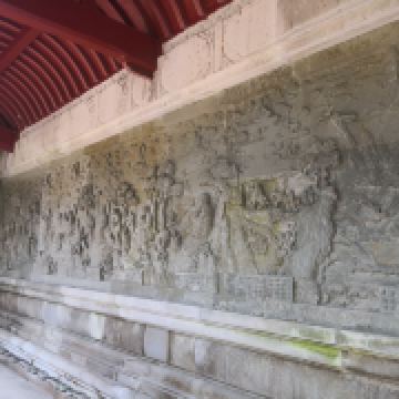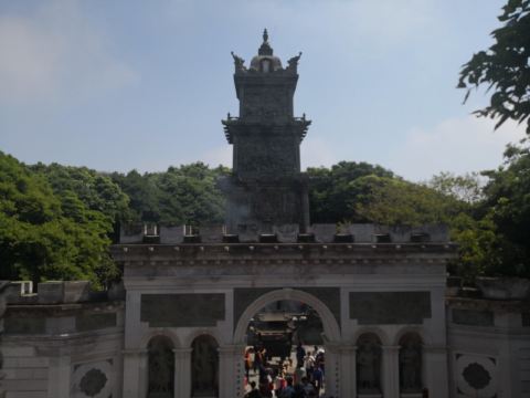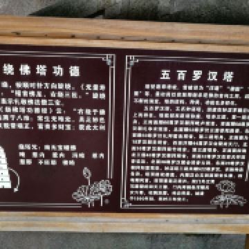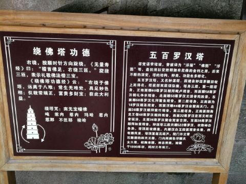 ◦ 五百罗汉塔:又称妙湛塔,坐落在洛迦山中部,于1990年始建,1993年6月建成。塔高27.6米,基座边长16.3米,双层须弥座,塔身三层,共雕罗汉像518尊,组成12幅罗汉朝观音图。