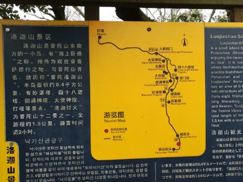 洛迦山位于普陀山本岛东南,是普陀山的“小行星”。从本岛东面的海岸望去,洛迦山好似一尊大佛卧在海面上,有“海上卧佛”的美誉。去洛迦山要从普陀山本岛乘船前往,岛上游人不算多,禅院和灯塔是不可错过的景观。