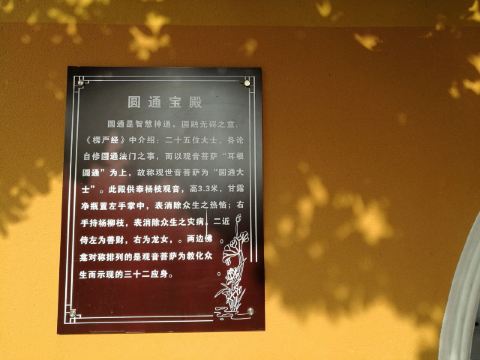 ◦ 圆通禅院:四周林木葱郁,环境幽静,香火旺盛,供柳瓶观音座像,两边塑观音三十二应身。