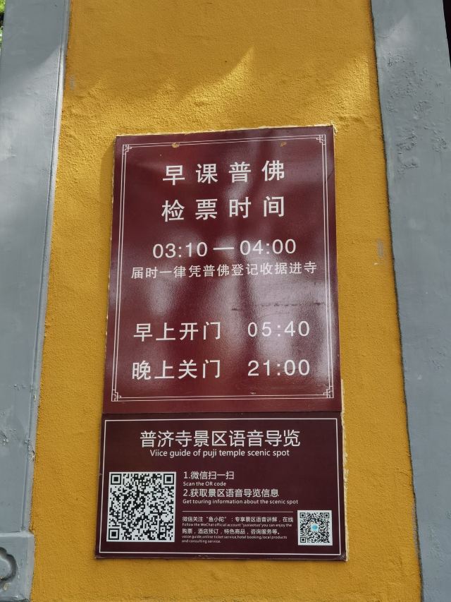 我看门口的提示牌,据说早上三点僧人们开始早课,如果愿意的话,可以参加。