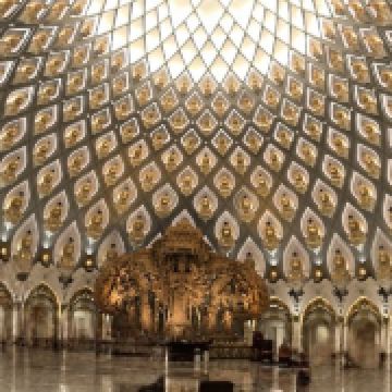 • 观音圣坛:观音法界的核心标志建筑,高91.9米,地上十层、地下局部一层。内部供奉千手观音像,穹顶镶嵌310座毗卢观音正法身像,金碧辉煌。