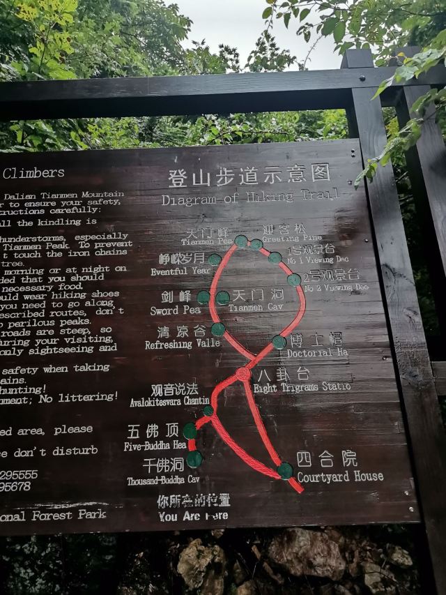 爬山的话需要看自己体力选择怎么爬,体积非常好的,可以全程徒步,来回一共14公里左右。从售票处到山脚下有五公里略微有些斜坡的路,基本没有遮挡,夏天真的很要命。这段其实可以选择坐摆渡车,一个人来回40。从山脚下往上顶的一段就很好爬,全是树荫,也没啥难度,只有从天门洞到天门峰的那一段稍微有点陡。整个过程大概一个小时,空气和风景真的都非常好,溪水特别清澈,还冰冰凉凉。