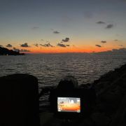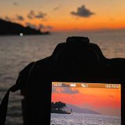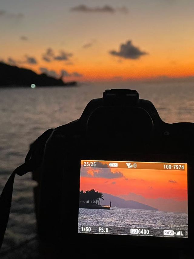2️⃣灯塔前长椅举椰子摆拍(侧光拍出发光发丝)