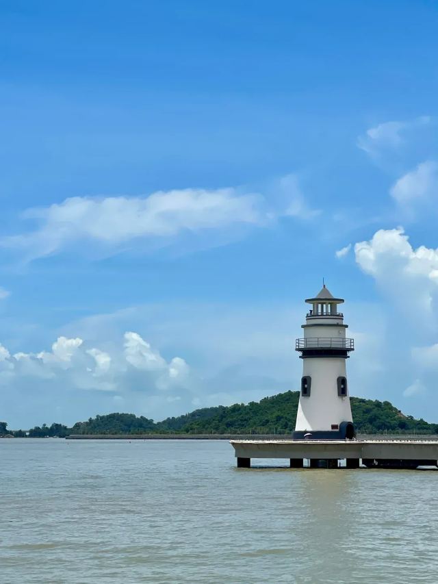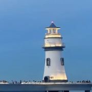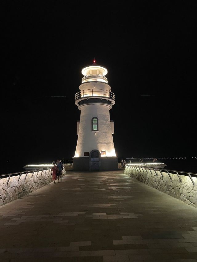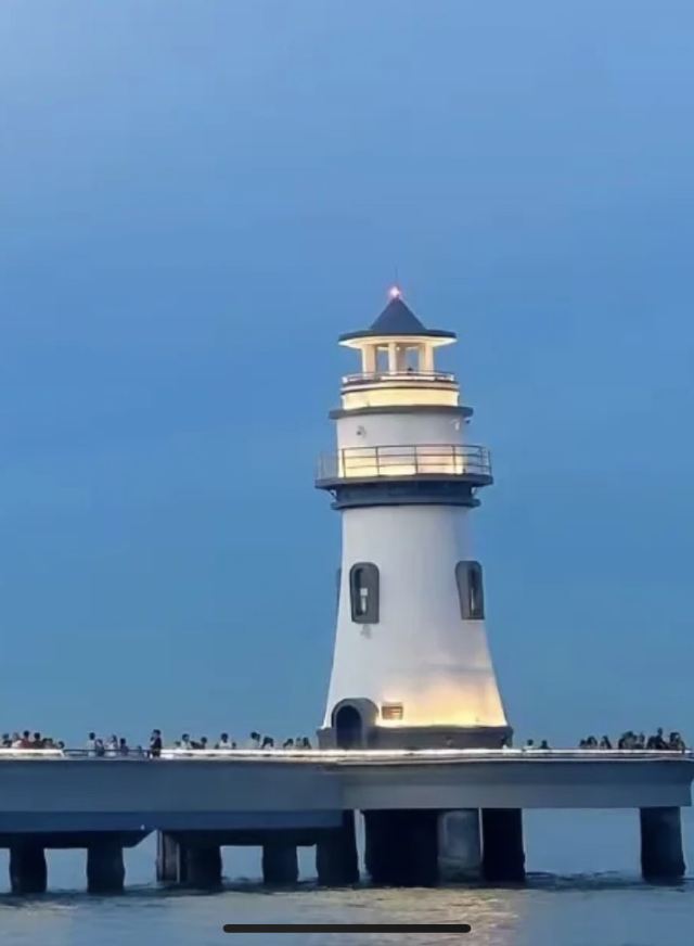 蓝白相间的巨型灯塔像漫画场景,傍晚亮灯瞬间全场尖叫!建议穿JK制服/白裙子超出片