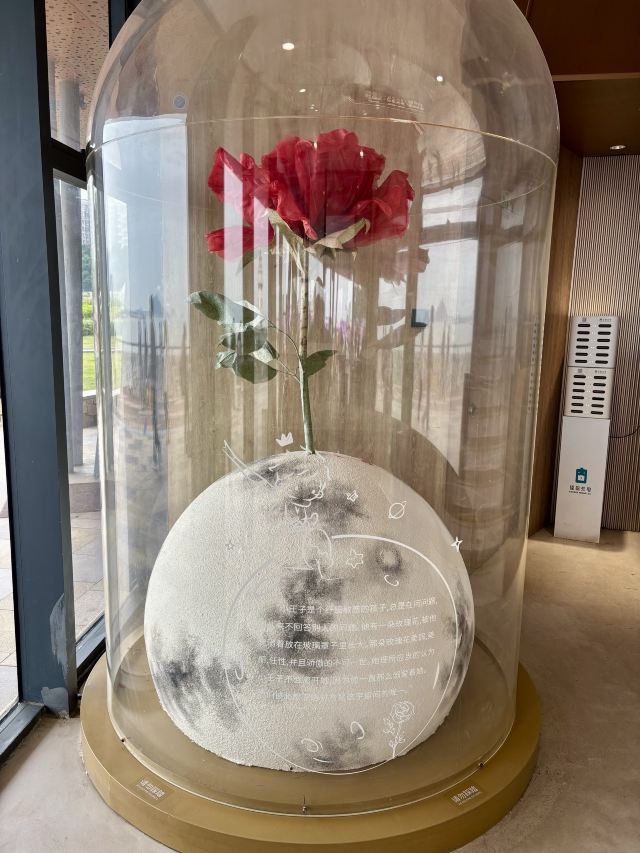 旁边的二层玻璃小楼,就是“爱情邮局”,外型就仿佛是一本合起来的书。二楼上有一朵硕大的玫瑰花,可能这就是名字的由来吧。