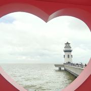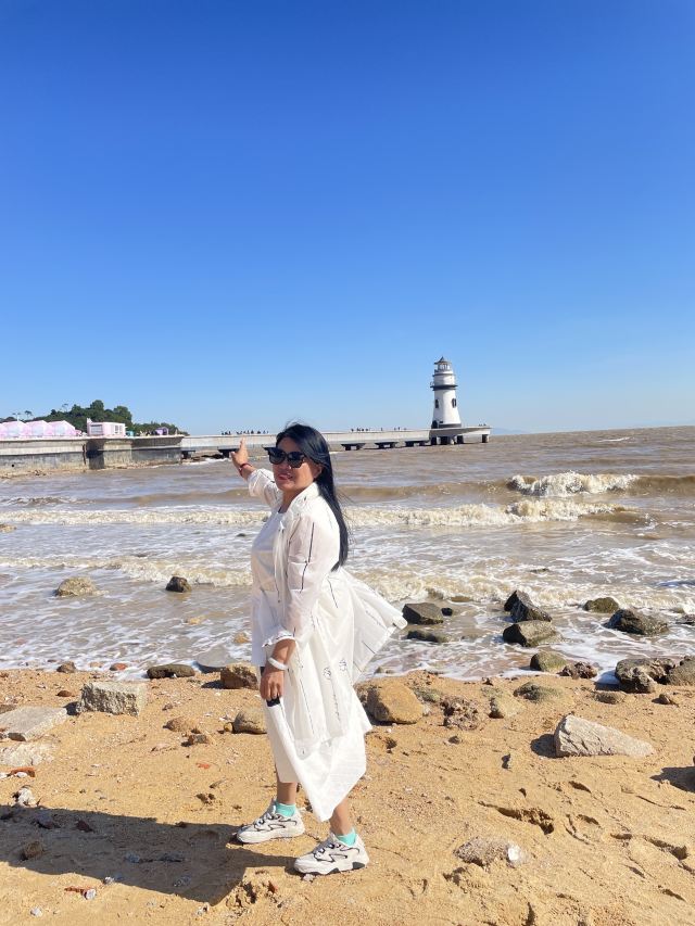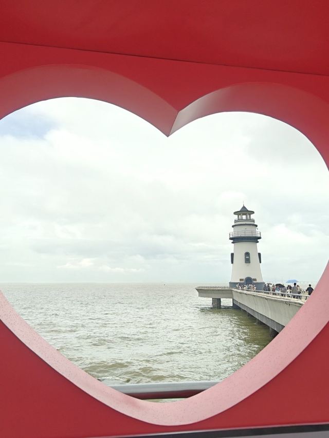 1️⃣三楼爱心观景台俯拍(构图带灯塔+大海)