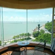 5分 超棒情侣路海景公寓退房前拍的无敌海景——原来270度海景房真的漂亮好多啊!可惜没有试睡机会啊!好像比俺的180度房间就贵几十块钱吧!附近也可以登高望远——珠海石花山。山虽不大也不高,却能远眺四周城区与海洋美景!人迹罕至、宁静怡人!