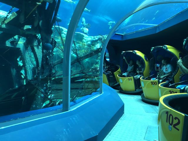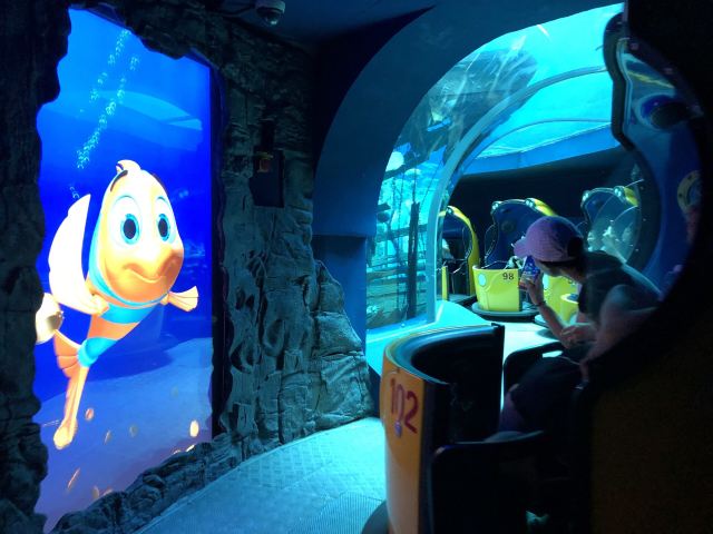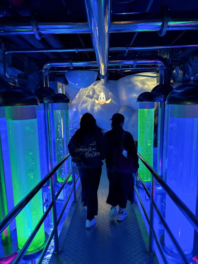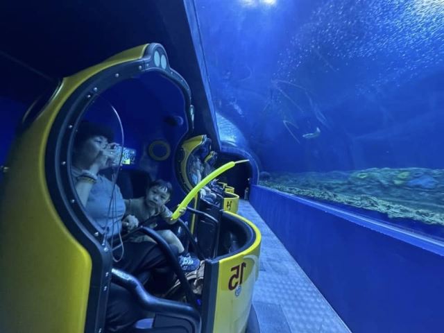 更让人惊喜的是 坐的装置还会360度旋转 甚至是上坡下坡和翻转!来到海底隧道的下面!太有意思了!真的是喜出望外 大家都惊呆了 还有这种操作 只有亲自体会了