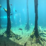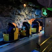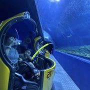 到了地下 走过弯弯曲曲的很长的通道 看到一个类似潜水艇的装置 接下来 坐上去 像海底缆车那样 开启海底隧道游览吧!