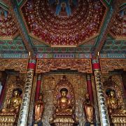 游览金台寺,可以先做公交车到山下公路,然后沿山走两公里左右的上山路就可以到达。一路上绿树葱郁,空气清爽,而且往往很安静,非常舒服。进入寺院里,依然是安静的氛围,这里的佛教氛围比较传统纯粹,可以上一柱香,随意走走,享受山中的清静。