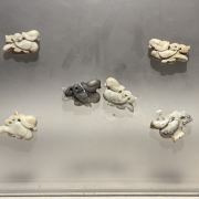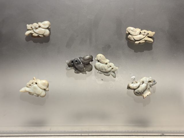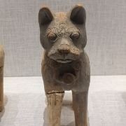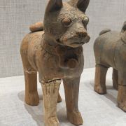 仔细看小狗们的毛发和项圈都刻画得很精致!狗狗们身上还有彩绘!有一只描眉画眼的,难道狗狗们也化妆吗?……有一只耳朵不知道是残损了还是本来就做的一只耳朵竖起一只耳朵垂下来的样子,真的很可爱!