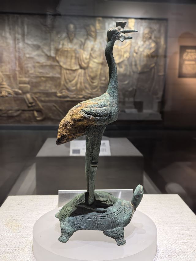 这尊仙鹤(脚下踩着乌龟?玄武?嘴里衔着仙草,不知道是不是灵芝)应该是驻马店博物馆的镇馆之宝(之一)了,真的很好看啊!仙鹤的羽毛多么精致!还有残存的彩绘!