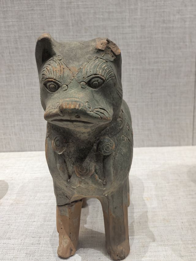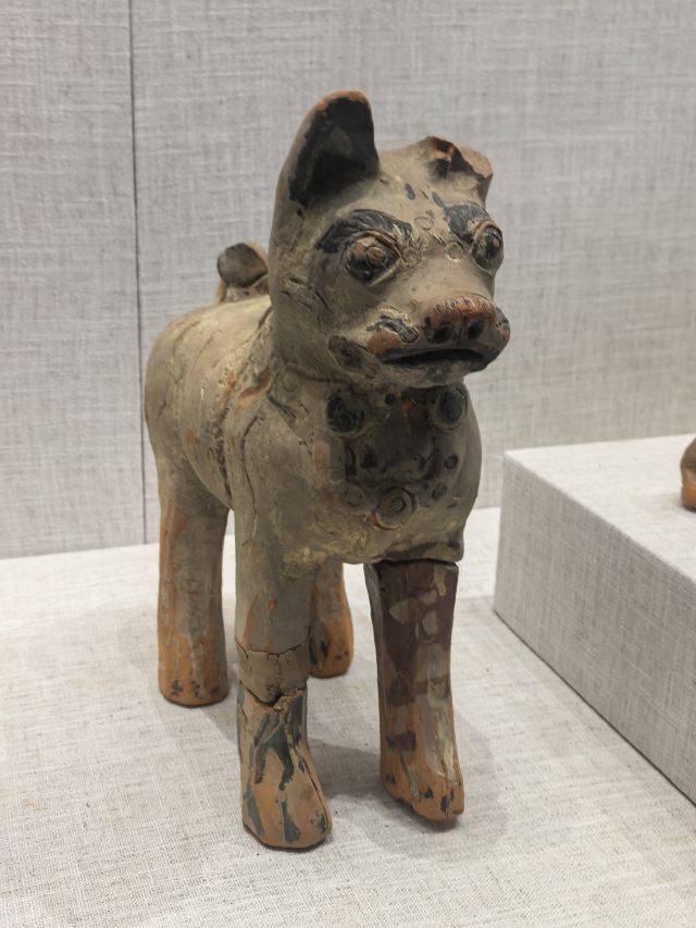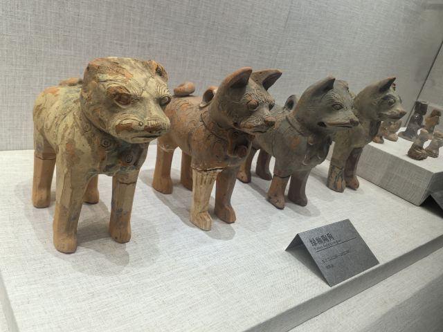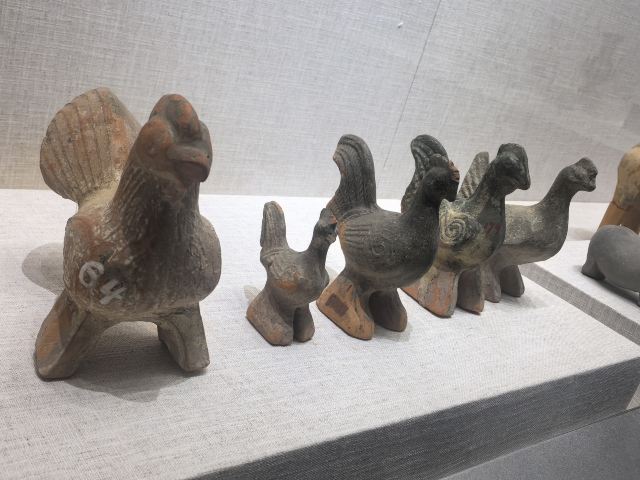 博物馆中陈列有很多汉代的陶鸡和陶狗,有一只真的很像河南博物院那只网红绿釉小陶狗!很有鸡犬之声相闻的感觉