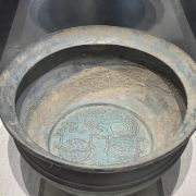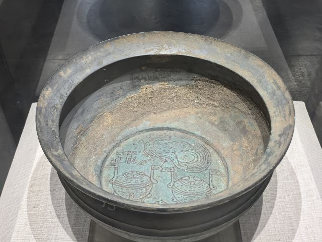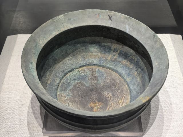 里面有可爱花纹的鱼洗(不知道摩擦边沿会不会冒出水花)
