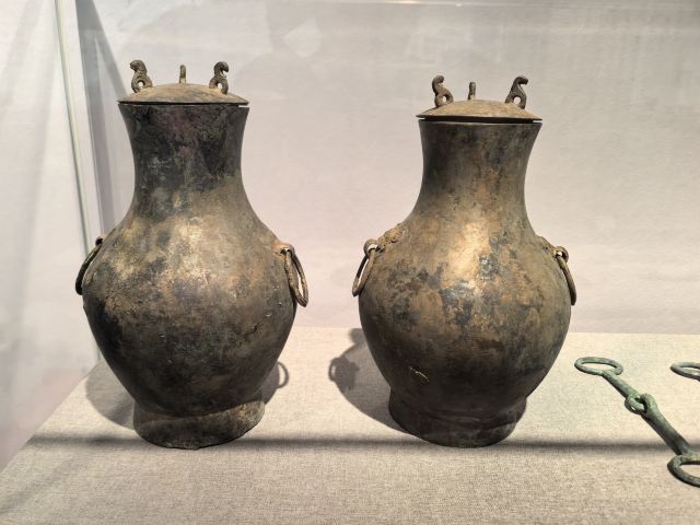 这里既出土有楚国风格的文物,也出土有秦国风格的文物(蒜头瓶是秦国特有吗?不过确实看起来比较朴素……)