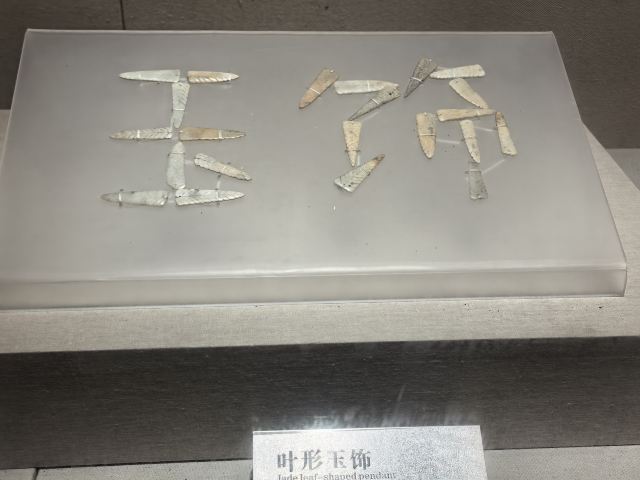 (驻马店博物馆的工作人员太有意思了!用玉叶摆成“玉饰”两个字!)